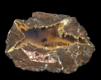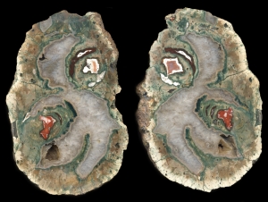 As a matter of fact, yonic symbols are not exactly rare in thundereggs if you look for them – no doubt thanks to the splits and opening up of the rock that occurs. However, it would be hard to imagine a more direct naturally generated fertility symbol than this somber thunderegg.