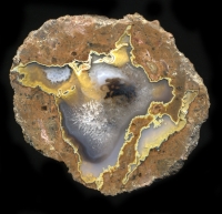 A fairly esoteric yet decidedly sinister simulacra thunderegg. All I know is that I would not like to wake up in the night and find this thing staring down at me.
